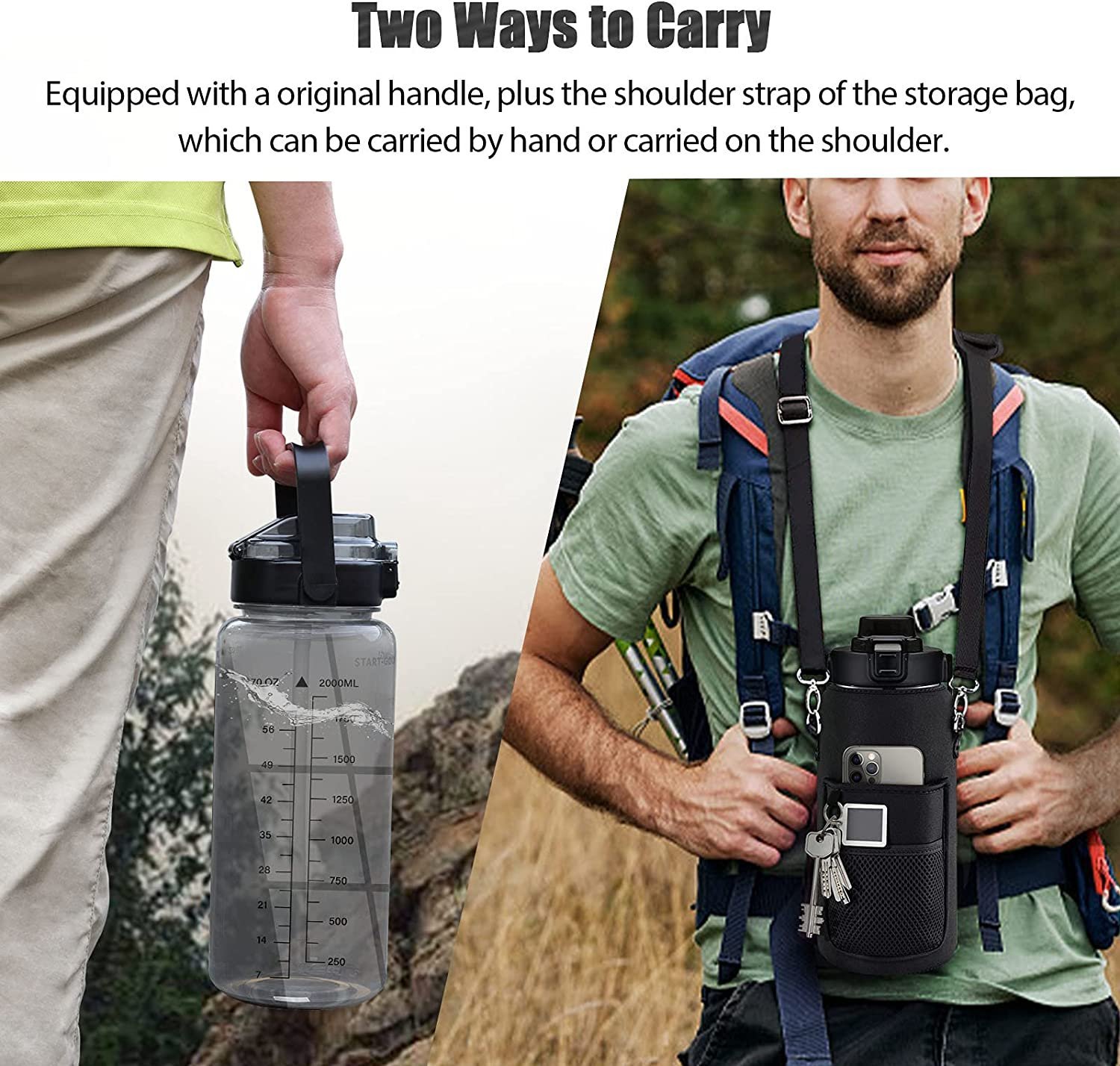 2 Liter Water Bottle with Strap Thermos Pouch Water Cup Cover Storage Bag Carrier Sleeve Bag