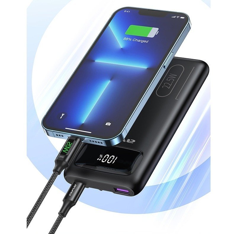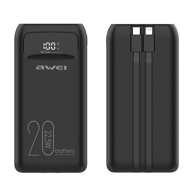 Awei P169K 20000mAh 22.5W Fast Charging Dual Input Dual Output with Built-in Cable LCD Display Power Bank