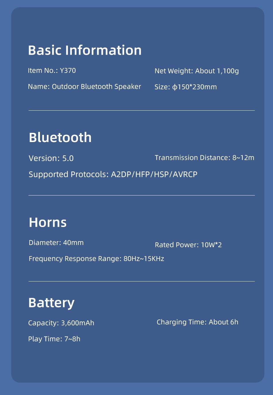 - Bluetooth Transmission Distance: 8-12 M