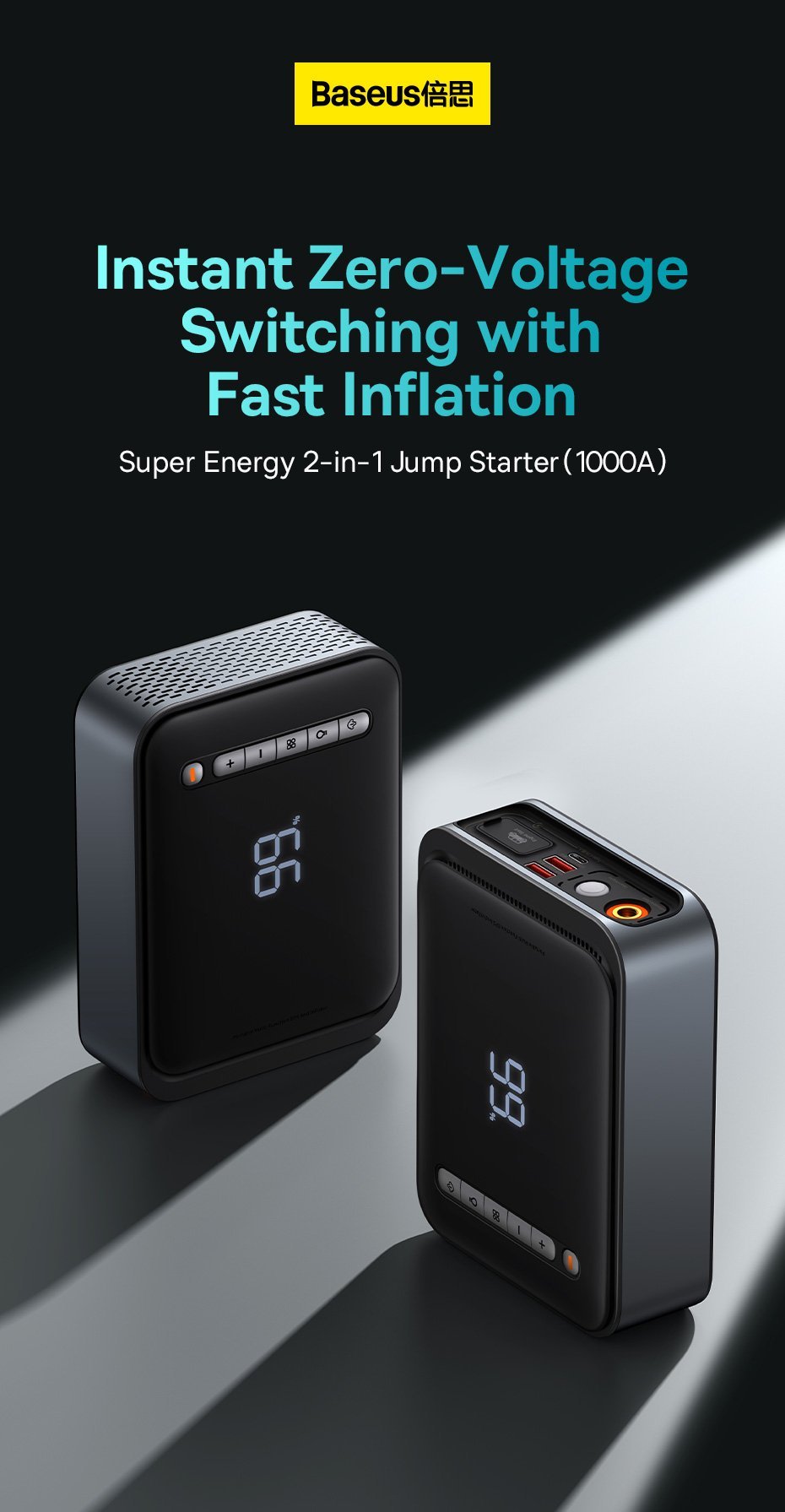 BASEUS 2 in 1 1000A Car Jump Starter Power Bank and Portable Air Compressor Inflator Pump