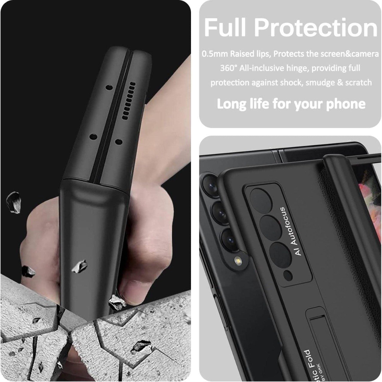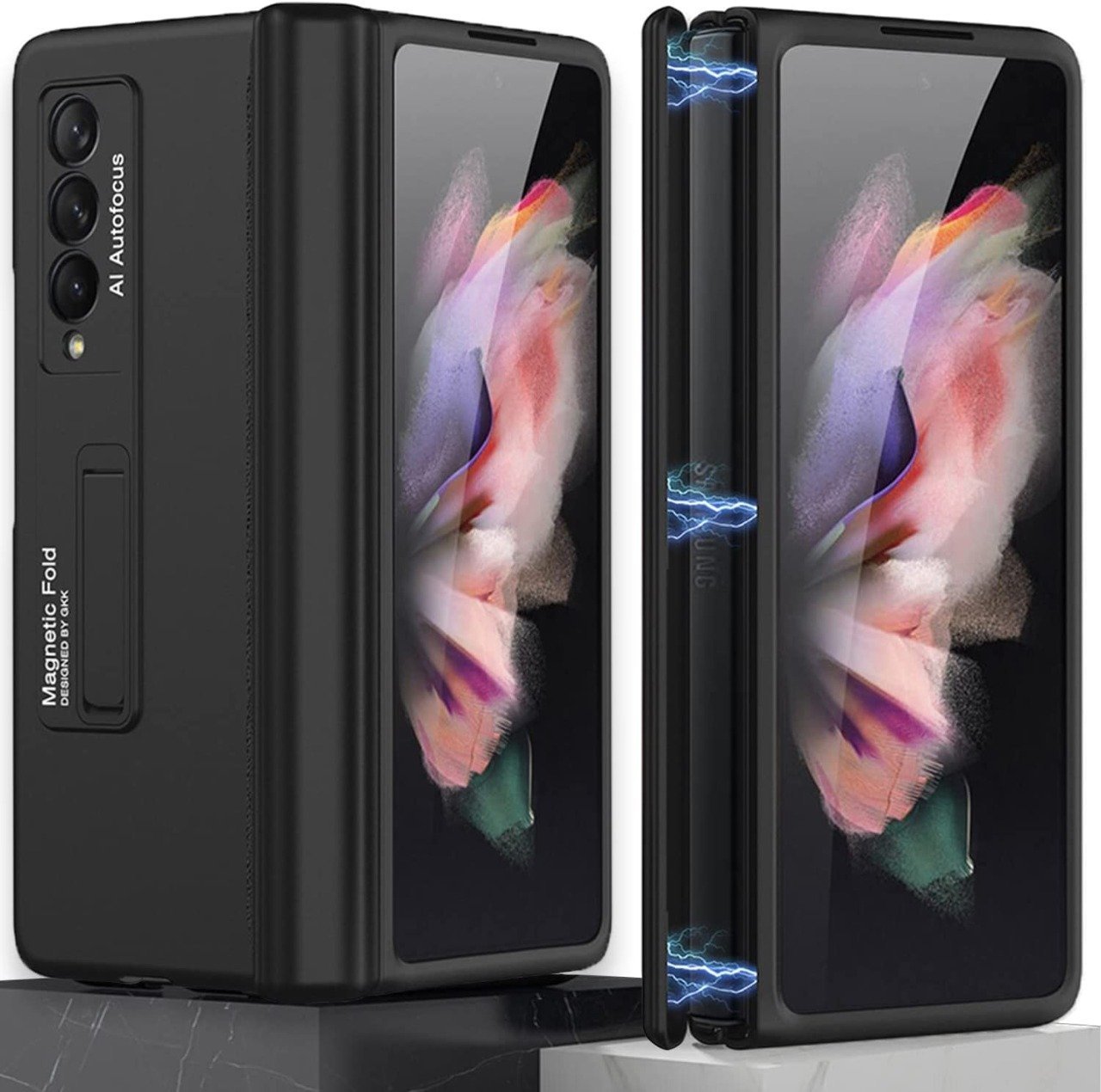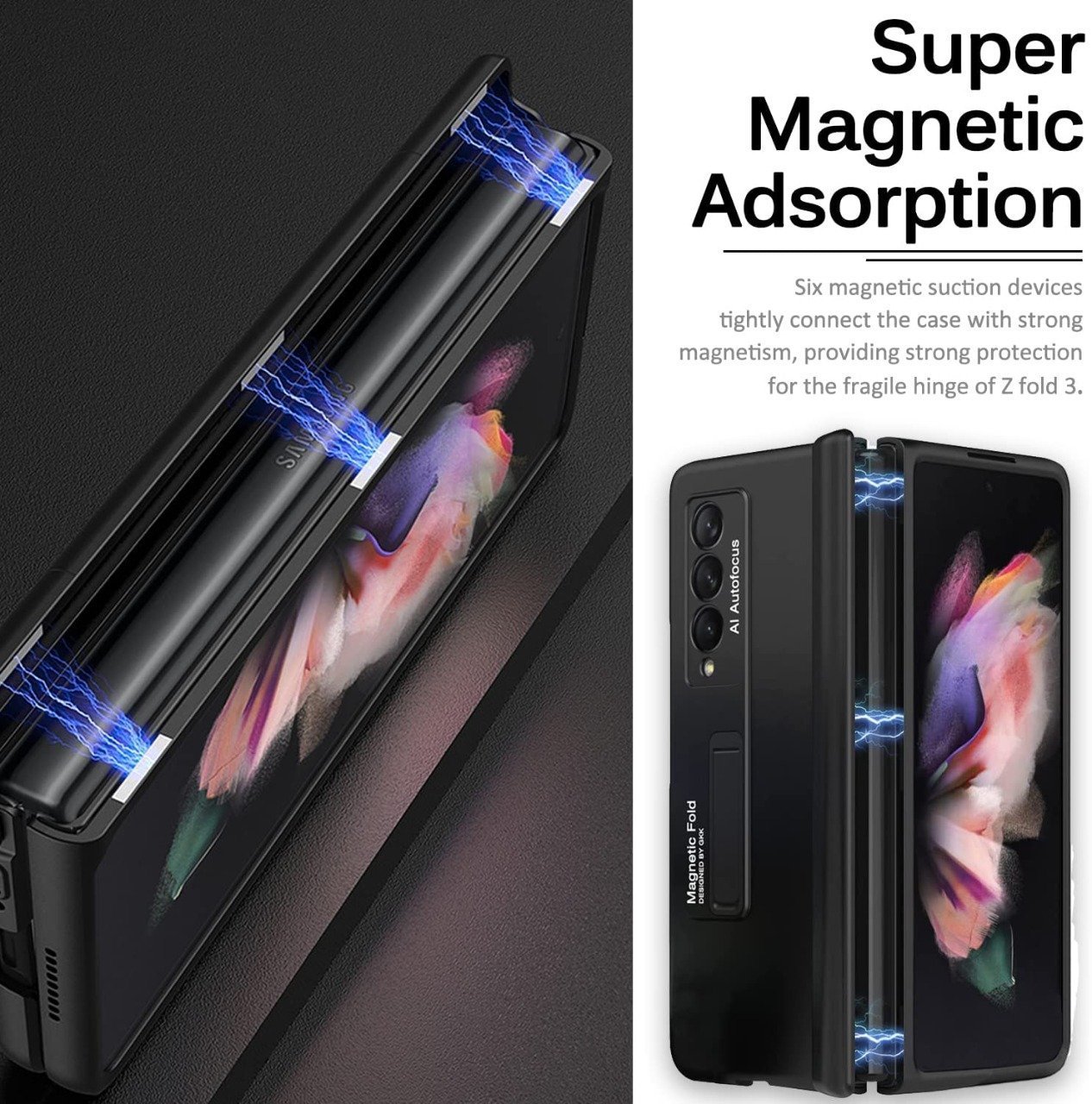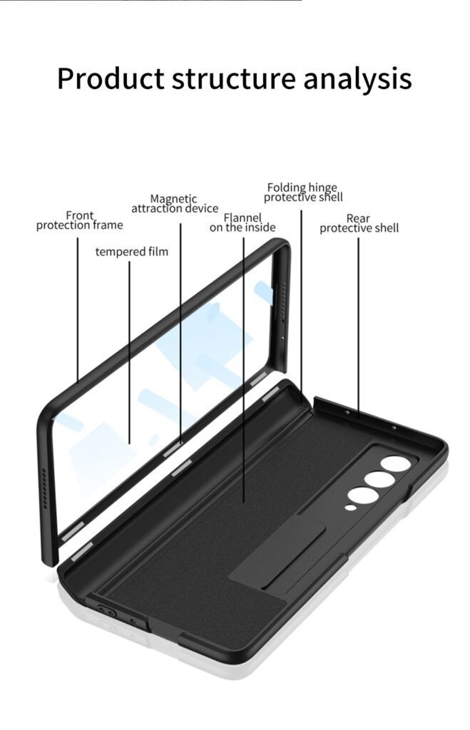 Exclusive hinge protection design, magnetic closure method, good-looking equally when unfolding, while providing strong protection for the unique fragile hinge of z fold 3/4.